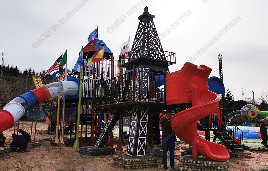 河南省三门峡市星河乐园是一个综合像游乐园,该项目采用的是kaiyun开云游乐生产的大型欧韩风格的组合滑梯,具有攀爬、爬网、滑梯、钻洞、网绳、吊桥等功能,设计完美、质量优越,深受小朋友们的喜爱。
