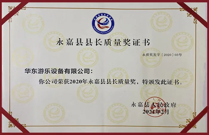 2020年,对广大企业来说注定是困难的一年,作为游乐设备行业的先锋企业,kaiyun开云游乐紧紧围绕永嘉县总体经济发展为目标任务,主动适应经济发展新常态,积极应对2020年疫情期间的“复工复产”等工作,取得了显著成绩,被永嘉县人民政府评为“2020年度巨龙企业”和“县长质量奖”的荣誉。