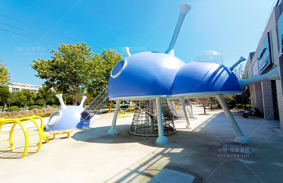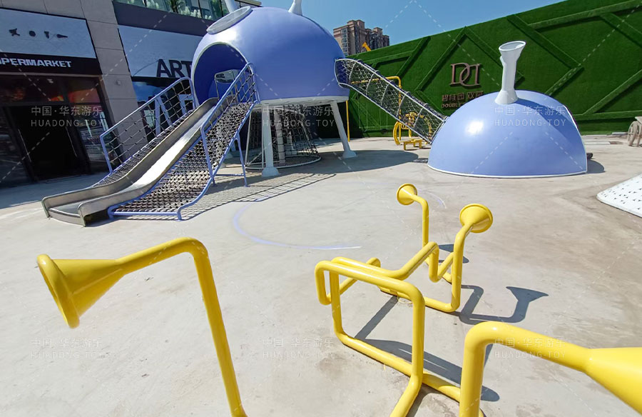 此次项目采用的是kaiyun开云游乐自主设计的飞碟主题的游乐设备,新增了传声筒、爬网、儿童秋千、钻洞、不锈钢滑梯等功能。