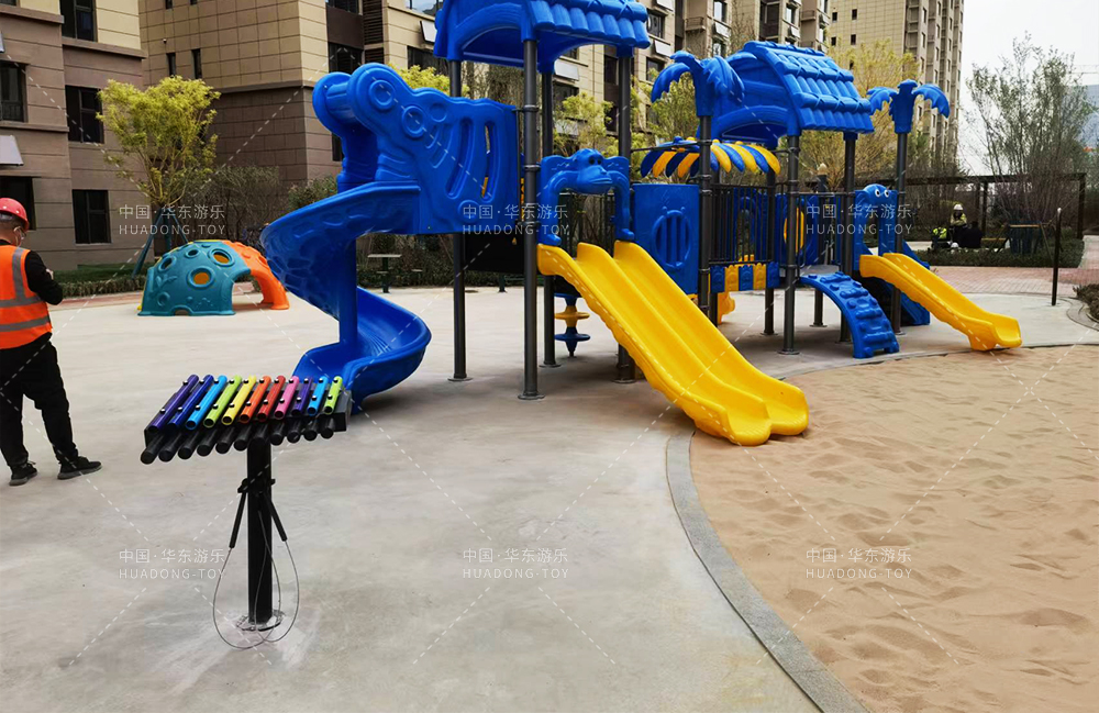 银川金凤街碧桂园地产选用的是kaiyun开云游乐自主研发的森林系列滑梯为主要游乐设备,整个场地设置了小朋友喜欢的摇摇乐、打击乐器、攀爬球、儿童跷跷板等游乐设备,为小朋友的健康成长提供了一个健康快乐成长的游乐场所。