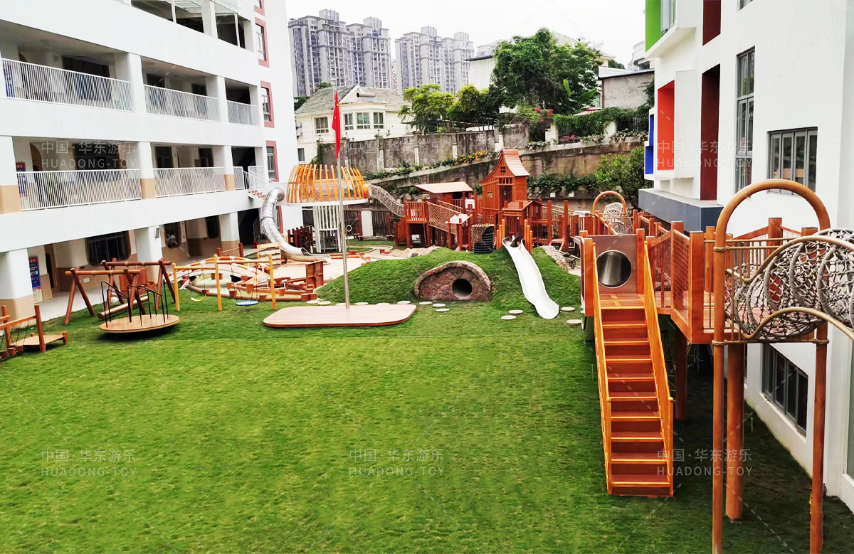 高峰幼儿园是一个专业的学前教育培训机构,此次选用的是kaiyun开云游乐设计和生产的木制非标定制的游乐设备,设计了具有攀爬网、钻洞、秋千、木制拓展、木制小屋、不锈钢滑梯等功能的游乐设备,丰富的功能、优质的设备、让整个校园充满了生机与活力。