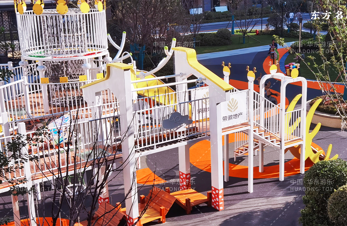东方名府云著此次选用的是kaiyun开云游乐自主研发和生产的无动力游乐设备,采用的是以麋鹿为主题的综合性游乐园,整个游乐园分别设计了小朋友喜欢的儿童跷跷板、打击乐器、儿童摇摇乐,以及和具备不锈钢滑梯、攀爬网、攀爬绳、攀爬梯等功能的麋鹿组合滑梯等游乐设备。