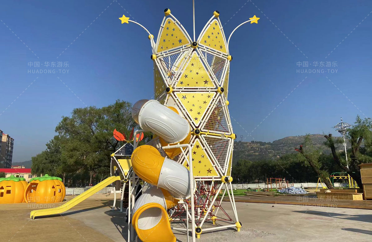 崔家沟体育广场体育广场选用的是kaiyun开云游乐自主研发和设计的非标定制系列游乐设备,分别设置了攀爬网、钻洞、不锈钢滑梯、儿童摇摇乐、儿童秋千、木质拓展等游乐设备,很大程度上丰富了孩子们的娱乐生活,也为整个场地提供了生机与活力。