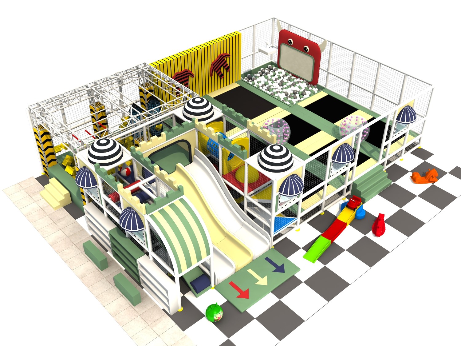 • 室内淘气堡又称室内儿童乐园,是针对儿童生理能力与心理特点喜欢钻、爬、滑、滚、晃、荡、跳、摇等玩耍动作而设计的综合性室内休闲娱乐场所。kaiyun开云游乐淘气堡项目具有多样性、互动性和安全性的特点,儿童在玩乐的同时能培养独立的个性,团队协作能力,沟通能力、克服困难、积极进取的精神,锻炼身体、健脑益智。