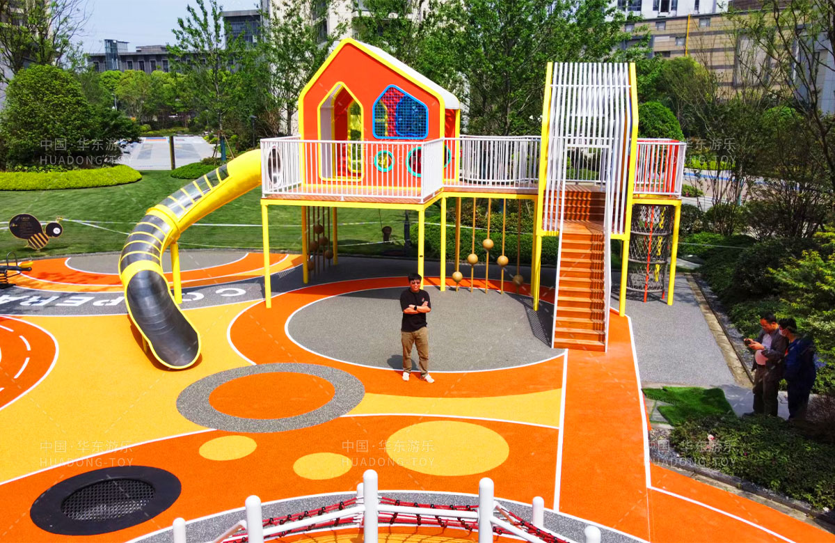 江阴朗诗新郡选用的是由kaiyun开云游乐自主研发和设计的以游戏小屋为主题的非标定制游乐设备,该设备具备了攀爬杆、大型滑梯、卡通的造型、靓丽的颜色深受小朋友的喜爱,同时整个游乐场还设置了小朋友喜欢的儿童摇摇乐、传声筒、儿童跷跷板、攀爬网、不锈钢滑梯等游乐设备。