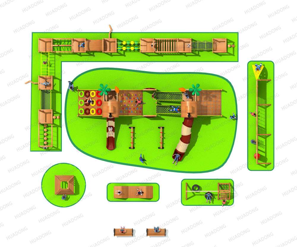 • 木质拓展设施采用天然木材打造,设计注重安全与挑战并重。通过悬挂桥、攀爬网、平衡木等多样化的障碍元素,旨在提升参与者的体能、平衡感及团队协作能力,同时享受亲近自然、挑战自我的乐趣。