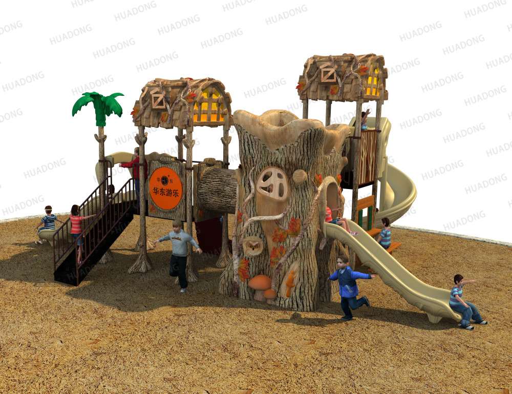 • 远古部落系列虽然名字带着“古”字,但是在设计细节处无不透露着艺术与创造性。当孩子在仿真树中探索、冒险、嬉戏游玩时,就像穿越到古老的神秘森林;粗略的树干包围着他们,头顶是高耸的茅草屋,触感真实的枯枝走廊,还有随处可见的小动物们…… 远古部落系列旨在打造区别于其他系列带给孩子们的新鲜感,让孩子们找设计者打造的神秘世界中获得冒险的乐趣。